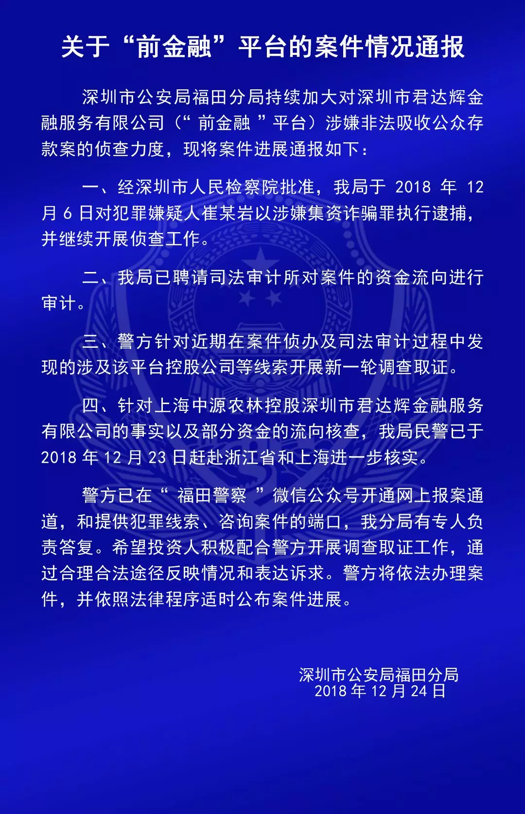 關(guān)于“合拍在線”“壹佰金融”“五星財(cái)富”“眾車在線”“財(cái)富中國(guó)”“小零錢”“錢爸爸”“合時(shí)代”和“前金融”平臺(tái)的案情通報(bào)
