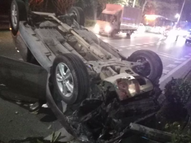 隨后方某駕車準(zhǔn)備回家,行駛至南灣街道布瀾路第三人民醫(yī)院路段時,由于方向盤操作不當(dāng),導(dǎo)致小車與路中隔離綠化帶發(fā)生碰撞,造成車輛翻車。