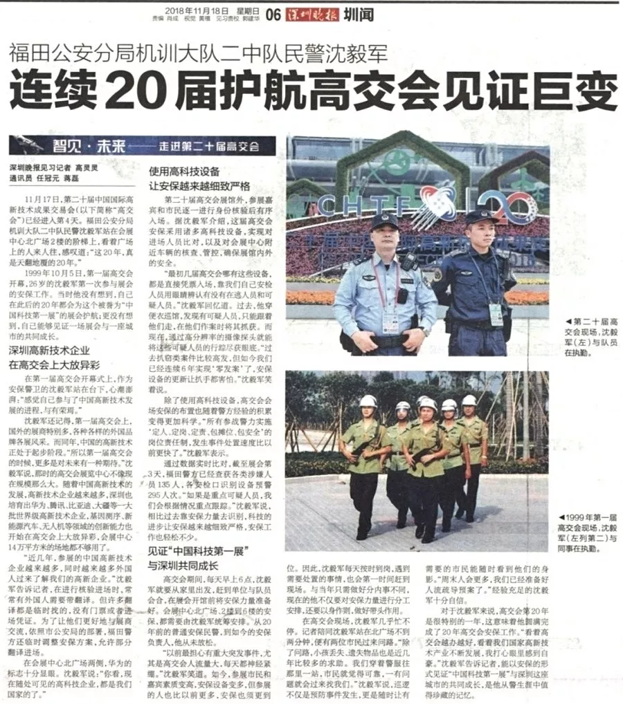 ★★11月18日,為期五天的第二十屆中國國際高新技術成果交易會在深圳會展中心圓滿落幕。福田公安分局在高交會警力部署、科技管控、防控打擊、安全宣傳、管理服務等方面一絲不茍,每日投入千名警力現(xiàn)場值守,實現(xiàn)了本屆高交會“零警情、零發(fā)案”,確保了各項展會活動安全、有序、順利舉行。