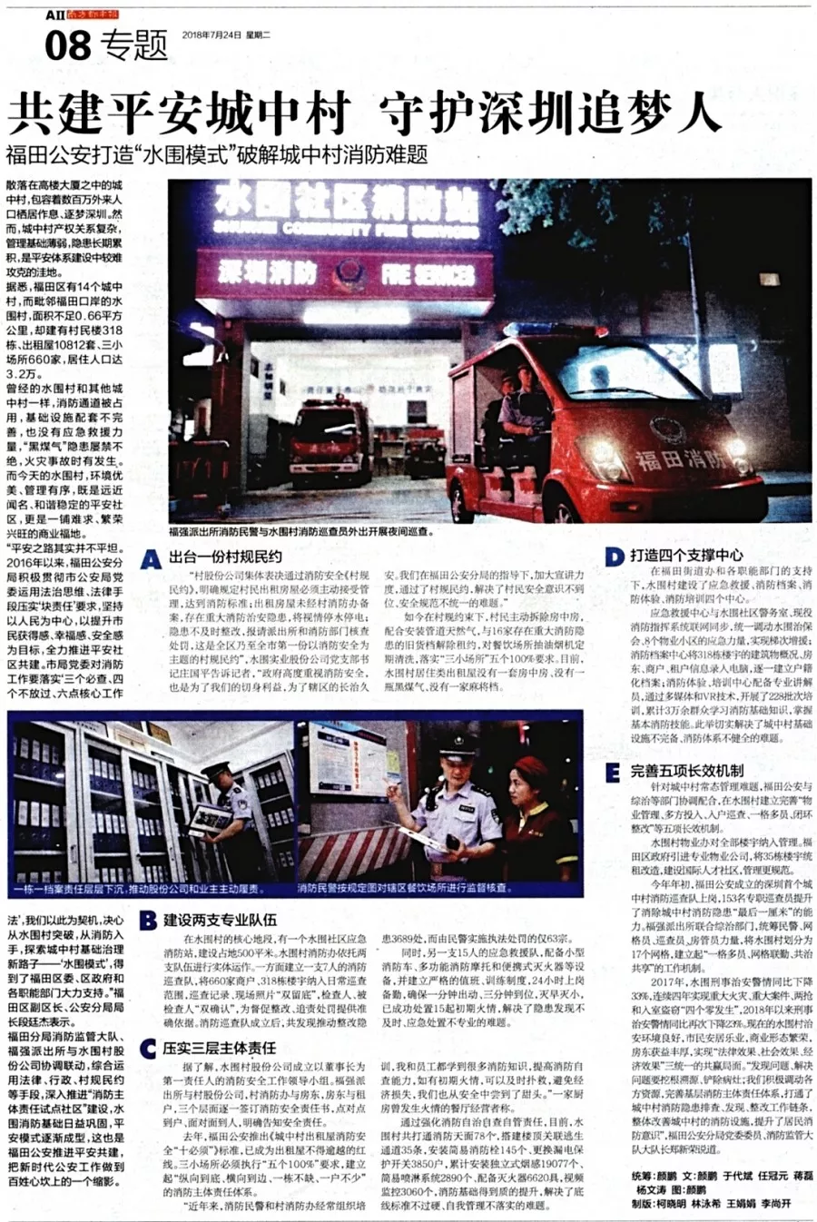 ★★“水圍模式”,基于問題導向,源于基層實踐,成于共治共享,福田警方通過“消防開路、治安同行,綜治固基、網(wǎng)格聯(lián)勤”,有效破解了城中村消防治安難題,為復雜區(qū)域基礎治理探索出一把行之有效的“金鑰匙”。