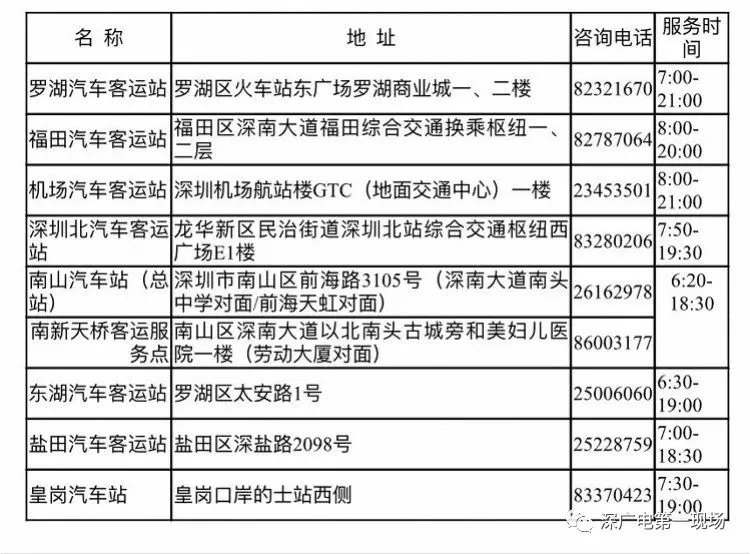 深圳市客貨運(yùn)輸服務(wù)中心有限公司所屬羅湖、福田、南山、東湖、鹽田、皇崗、機(jī)場(chǎng)、深圳北等汽車站及所屬客運(yùn)服務(wù)點(diǎn)將于1月5日起全面預(yù)售2019年春運(yùn)的汽車票。旅客可通過微信公眾號(hào)“深圳汽車客運(yùn)”、網(wǎng)站www.88895000.com等渠道查詢、訂購(gòu)票。