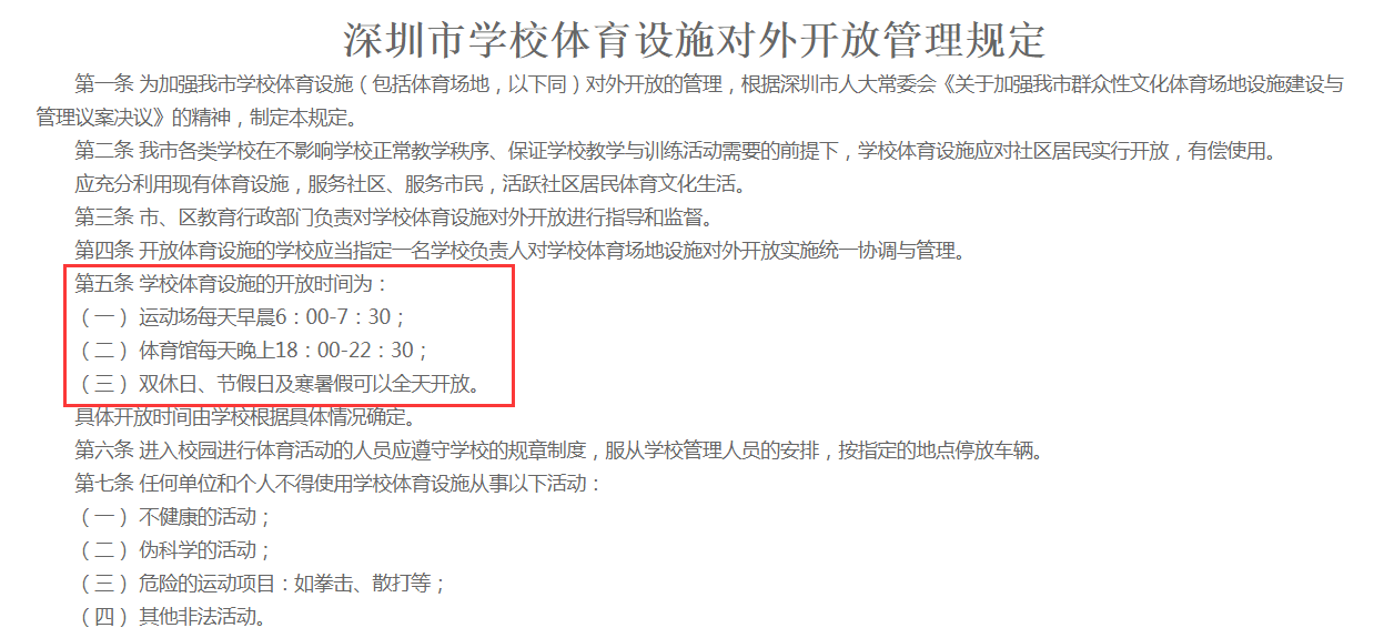 《深圳市學(xué)校體育設(shè)施對外開放管理規(guī)定》部分內(nèi)容