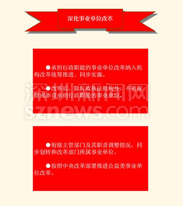 近日,《深圳市機(jī)構(gòu)改革方案》(以下簡(jiǎn)稱“方案”)經(jīng)省委、省政府批準(zhǔn),并報(bào)中央備案同意。1月8日至9日,市委召開六屆十一次全會(huì),對(duì)全市深化機(jī)構(gòu)改革工作作出全面部署,我市機(jī)構(gòu)改革工作進(jìn)入全面實(shí)施階段。