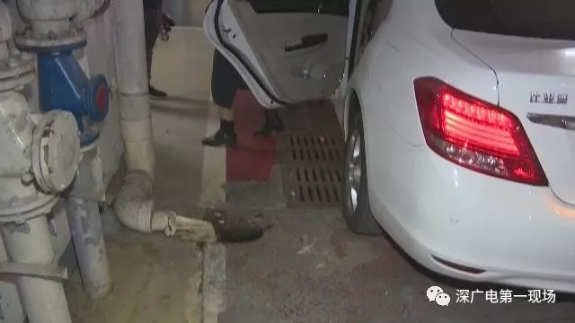付女士表示,將女兒拉起后,她才發(fā)現(xiàn)自己停靠的這個車位,左側正好有一條排污渠。而巧合的是,在其后排左側的車門下方,有一個直徑約30厘米的坑!