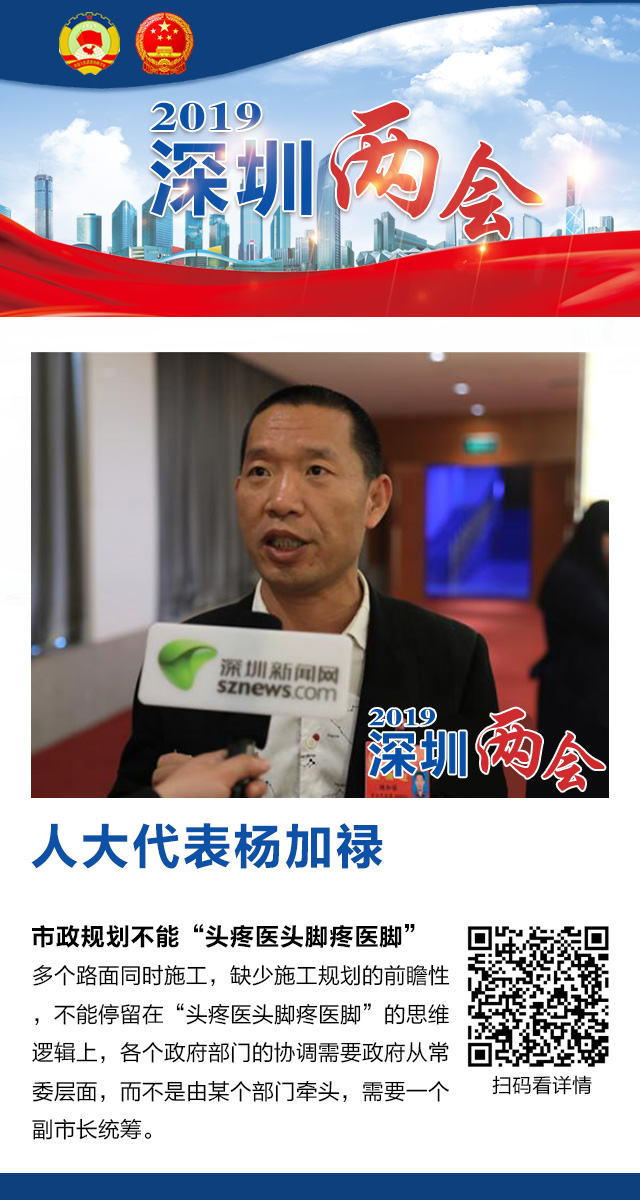深圳市六屆人大七次會議1月18日上午開幕。深圳道路被反復(fù)開挖成為了人大代表們關(guān)注的熱點之一。人大代表們表示,市政規(guī)劃建設(shè)不能“頭疼醫(yī)頭腳疼醫(yī)腳”,要打通各職能部門的信息壁壘,通盤考慮市政規(guī)劃問題,才能解決道路反復(fù)開挖問題。下面讓我們一起來看看人大代表們的觀點。