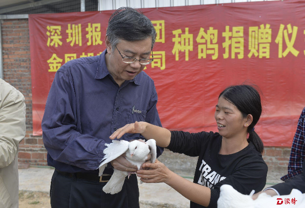 根據(jù)報業(yè)集團“因戶制宜一戶一策”“一個黨支部結(jié)對一戶貧困戶”的安排,鐘仿明選擇養(yǎng)鴿脫貧,兩年多來,集團金風(fēng)帆物業(yè)公司共計為他送來四批480對種鴿,還請來深圳光明農(nóng)場的技術(shù)員,對他進(jìn)行技術(shù)培訓(xùn)?!?80對種鴿全部成活!”1月20日下午,看到親自來送種鴿的陳寅等報業(yè)集團領(lǐng)導(dǎo),鐘仿明拿出一面錦旗,非常激動地說:“感謝黨的好政策,感謝深圳報業(yè)集團的真心幫扶!”