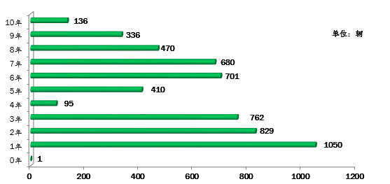 ▲行業(yè)教練車車齡統(tǒng)計(jì)圖(注:根據(jù)《機(jī)動(dòng)車強(qiáng)制報(bào)廢標(biāo)準(zhǔn)規(guī)定》第五條規(guī)定:小型教練載客汽車使用10年)