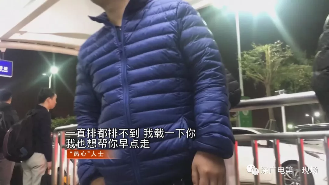網(wǎng)約車通道內(nèi),這些“熱心人士”的數(shù)量也不少——通向網(wǎng)約車通道的人行道,網(wǎng)約車通道等候的人群中,到處都有他們的身影,在他們看來,自己是在向初到深圳的旅客提供熱情周到的服務(wù)。
