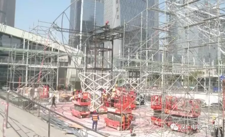 施工方表示,門(mén)樓造型復(fù)雜,對(duì)他們也是極大的挑戰(zhàn),30多名工人分兩班晝夜施工,目前已經(jīng)完成80%,預(yù)計(jì)1月28號(hào)完工。三朵花的長(zhǎng)度是39.6米,寬度是21.2米,光鋼材的重量有43.6噸