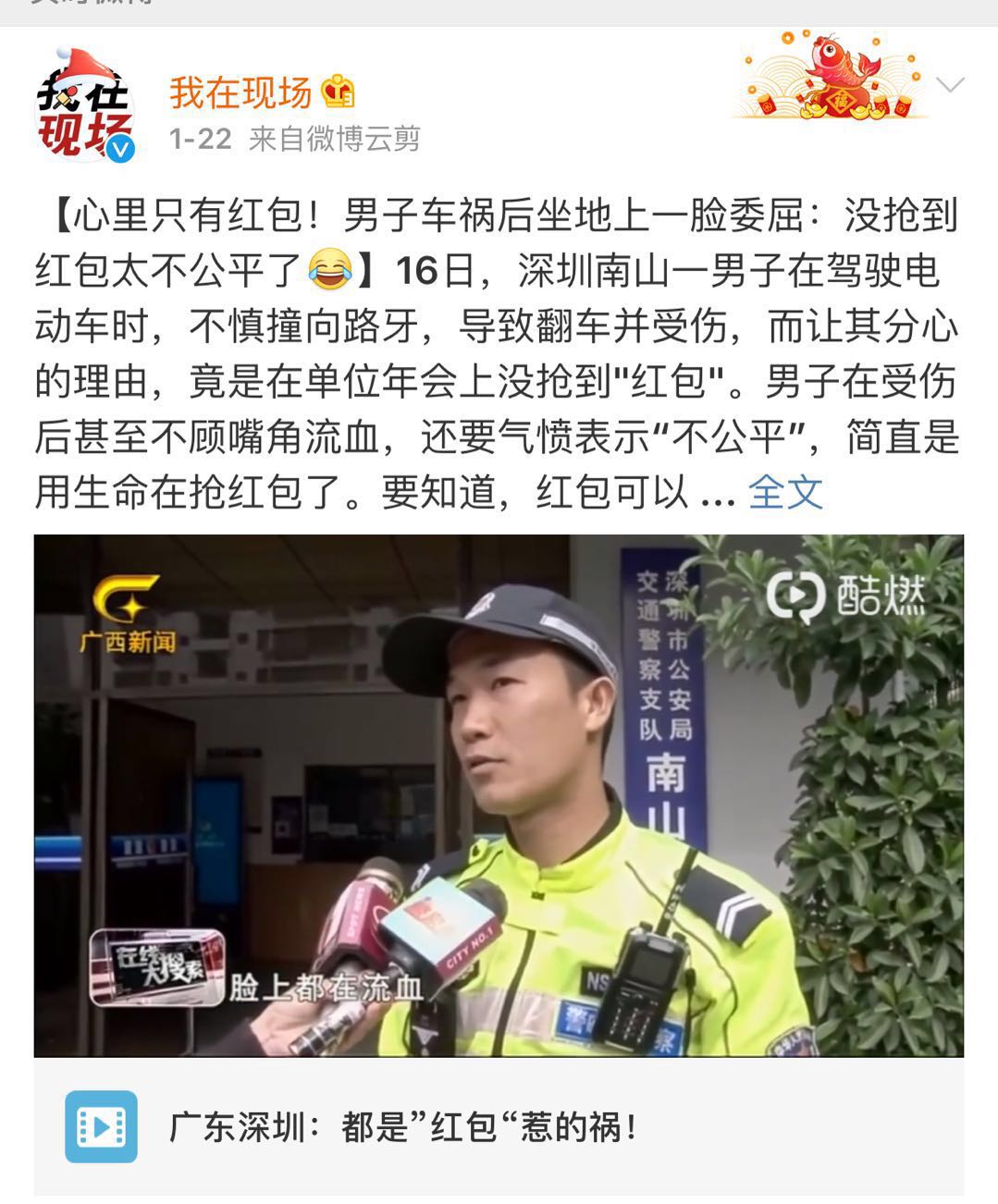 最近,深圳有個(gè)男子就因沒搶到紅包,心里憋屈,在騎車時(shí)“分心”摔倒。