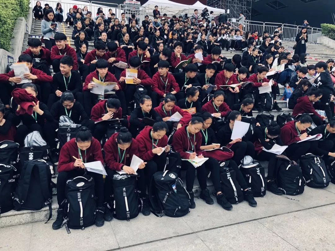 彩排階段,是深圳各中小學(xué)期末考試時(shí)間,學(xué)生們邊排練邊學(xué)習(xí),不誤期末考試,候場(chǎng)時(shí)時(shí)??梢钥吹酵瑢W(xué)們埋頭復(fù)習(xí)的場(chǎng)景,她們利用在訓(xùn)練期間短暫的休息時(shí)間,溫習(xí)復(fù)習(xí)資料和做課后作業(yè)。