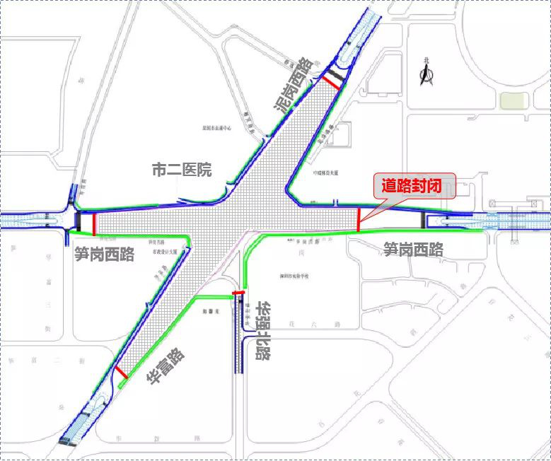 原經華富路北行往醫(yī)院交通調整為:皇崗路 -筍崗西路 -梅崗路 -梅崗南街上步路 -泥崗西路。
