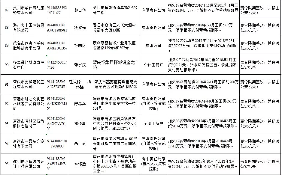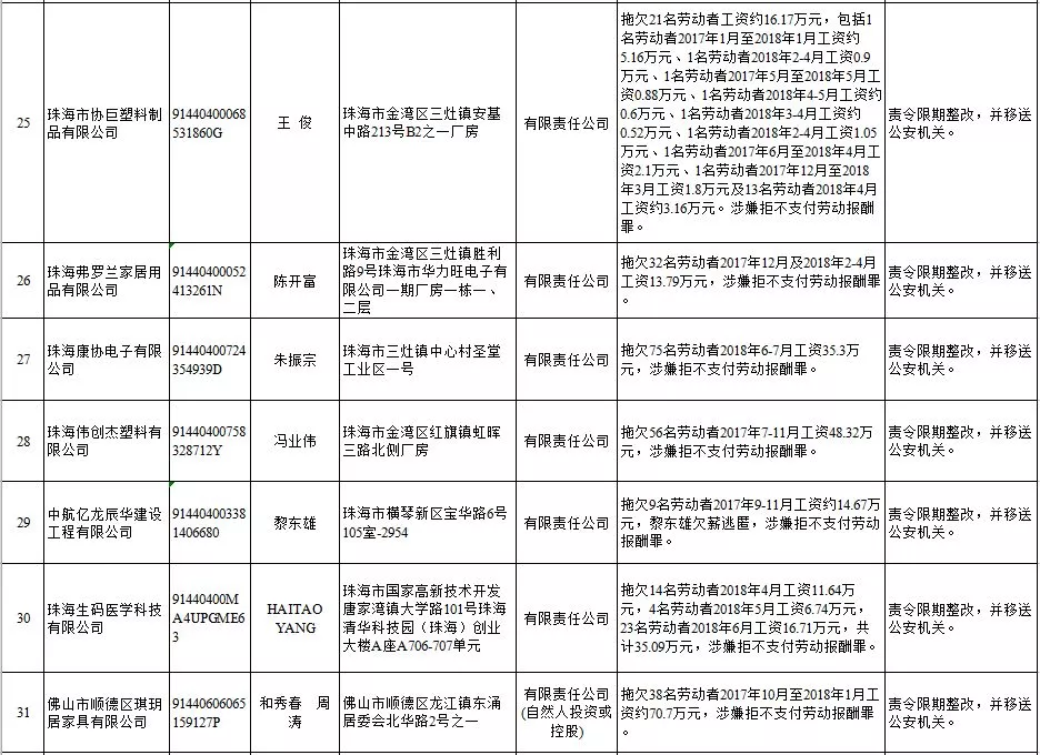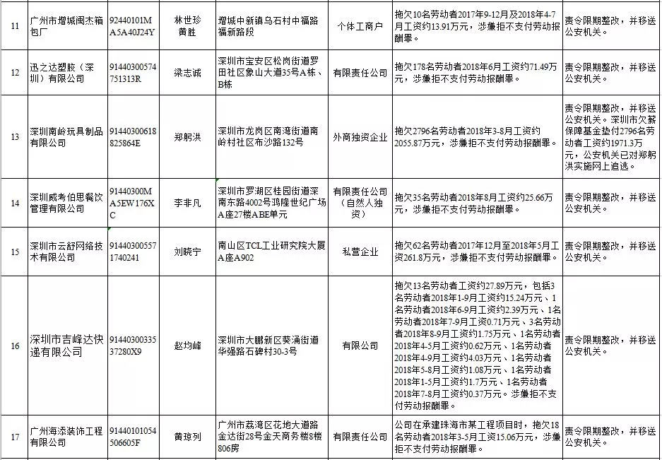 深圳新聞網(wǎng)2019年1月29日訊 (記者 劉婷)據(jù)廣東發(fā)布消息,省人社廳近日公布,2019年第一批用人單位重大勞動(dòng)保障違法行為名單。到底是哪些企業(yè)在惡意欠薪?這些“老賴(lài)”企業(yè)的營(yíng)業(yè)執(zhí)照、地址、法人等等超全信息都在這!
