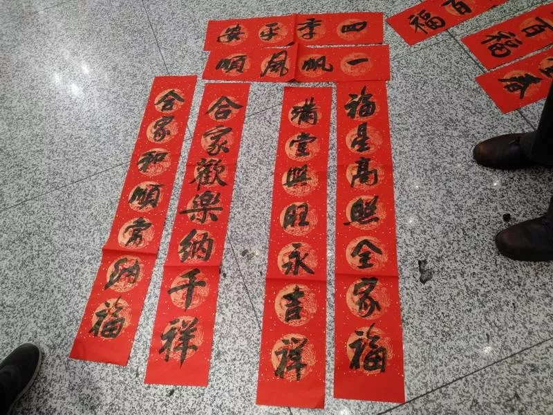 現(xiàn)場(chǎng)寫春聯(lián)的活動(dòng)時(shí)很心動(dòng),