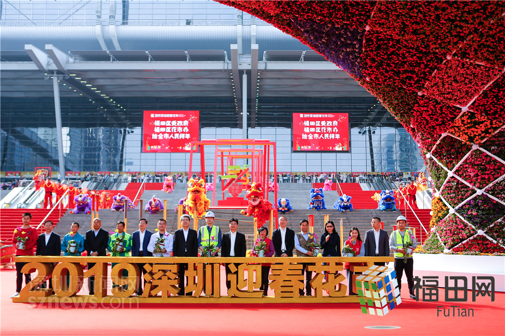 領(lǐng)導(dǎo)嘉賓向來深建設(shè)者贈(zèng)送年花。
