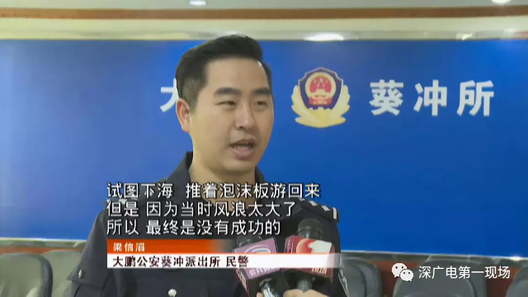 據(jù)大鵬公安葵沖派出所民警介紹,當(dāng)時兩個小孩漂得挺遠(yuǎn)了,其中一個想試圖下水把泡沫板推回去,但是失敗了。