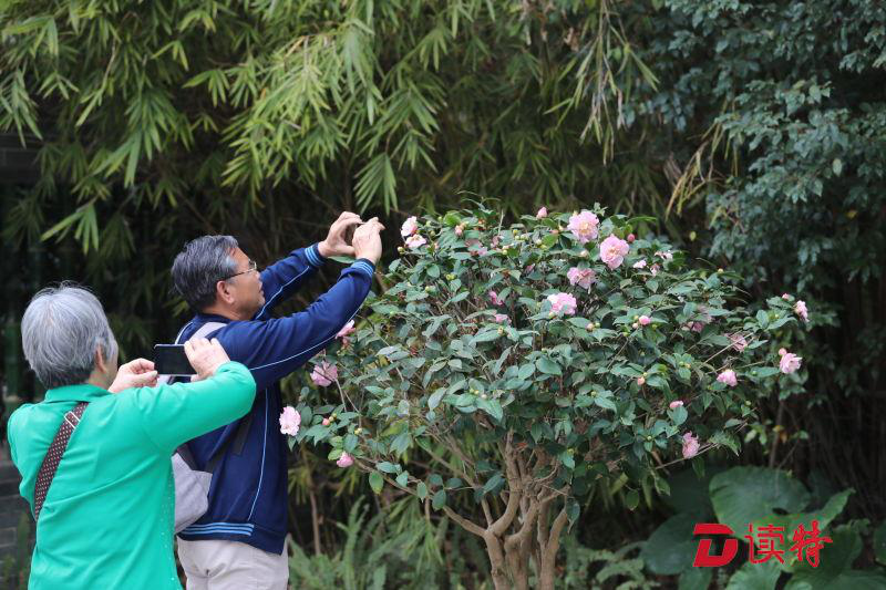花卉館內(nèi)的室內(nèi)展區(qū)是此次茶花展的一大亮點。"佳境"、"夢境"、"意境"、"秘境"、"禪境"5個觀賞區(qū),營造出不同的茶花文化意境。其中"佳境"將擺放特色茶花盆栽,讓游人進(jìn)入到茶花營造出的簡潔雅致的意境中;"夢境"利用"古樹"結(jié)合展示茶花插花藝術(shù),打造了夢幻的展示空間;"意境"以茶花切花花藝作品為主,結(jié)合茶花本身的特性與中式元素,展示意境唯美、充滿古韻的茶花插花作品。"我最喜歡‘秘境’,茶花盆景和山水盆景配上中式花幾和屏風(fēng),是濃縮的雅致山水呀。"63歲的孟先生由衷贊賞,"這是以情調(diào)韻味取勝,太美了?。⒍睦习閱贪⒁虅t最喜歡"禪境":"茶花盆景搭配中式鏤空屏風(fēng),簡直像一幅畫,水中還有倒影虛實結(jié)合,很有意境!"
