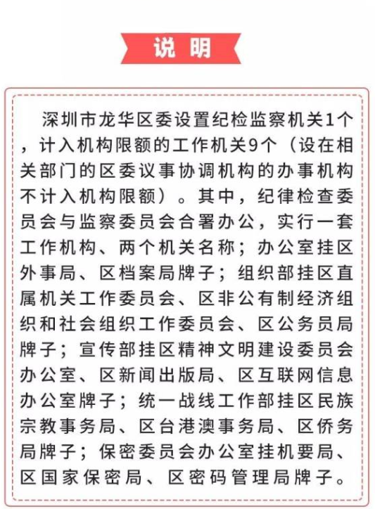 近日,《深圳市龍華區(qū)機構改革方案》(以下簡稱“方案”)經(jīng)省委批準,以省委機構編制委員會名義正式印發(fā)。2月14日,區(qū)委召開一屆六次全會,對全區(qū)深化機構改革工作進行動員部署,龍華區(qū)機構改革工作進入全面實施階段。