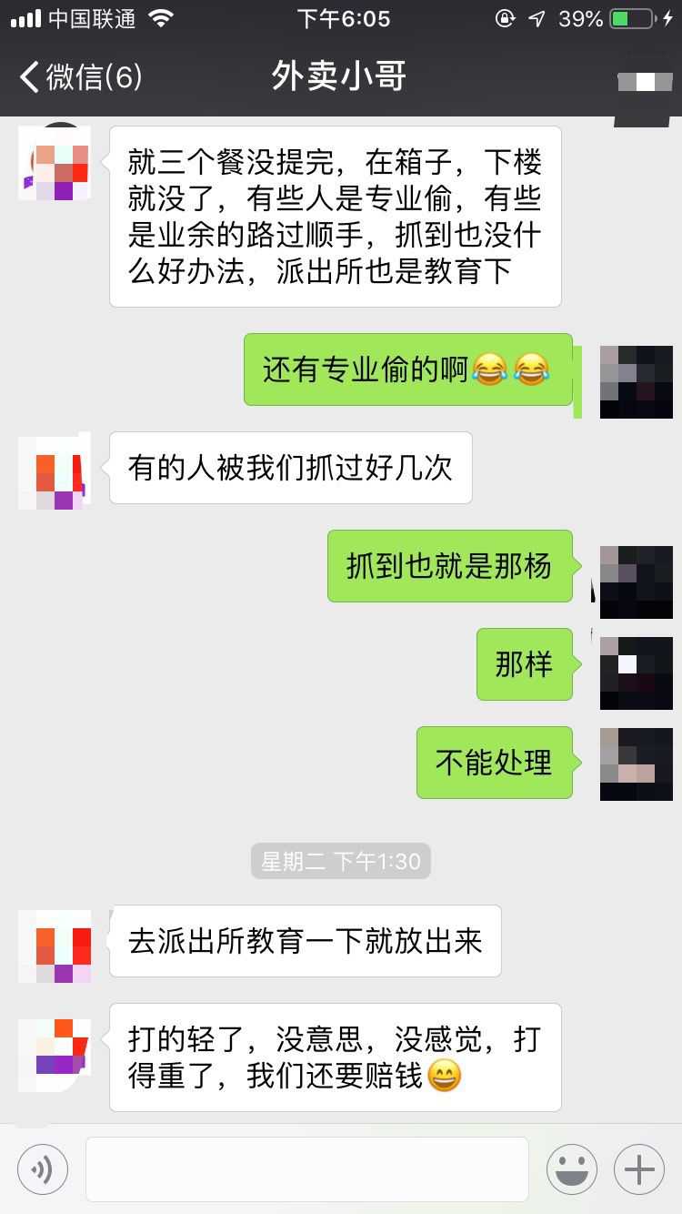 這是顏先生送外賣兩年多來第一次送餐被偷。他介紹,其他同事也遭遇過同樣的情況,有些人是專業(yè)偷,有些是路過順手牽羊。"有的人被我們抓到好幾次,但也沒辦法,我們不能打他。"顏先生介紹,由于被盜外賣價值不高,頂多200元,報警作用并不大,況且他們還要抽時間做筆錄,直接影響騎手們繼續(xù)送單,所以大家報警意愿并不強烈。
