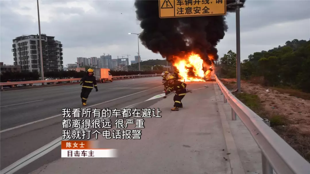 陳小姐從后視鏡中看到,大巴車上下來(lái)兩個(gè)人忙著滅火,陳小姐也第一時(shí)間提供了最重要的幫助,那就是報(bào)警。