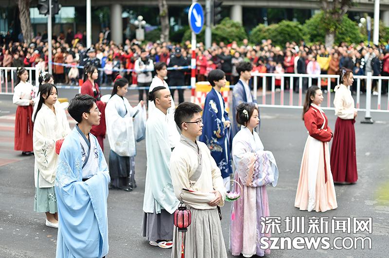 漢族服裝展示方隊(duì)正在展示漢服
