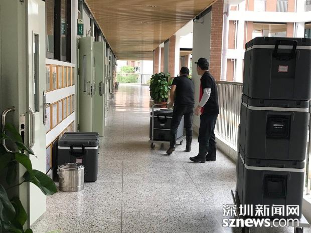 送餐人員在上午課程結(jié)束前將午餐送到每個班級門口
