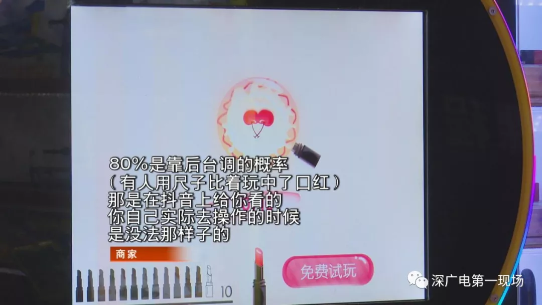 記者注意到,在網(wǎng)上,也有一些所謂的口紅機(jī)通三關(guān)的攻略,不過有商家表示,說到底,中獎(jiǎng)幾率還是靠設(shè)定,所謂攻略基本不靠譜。