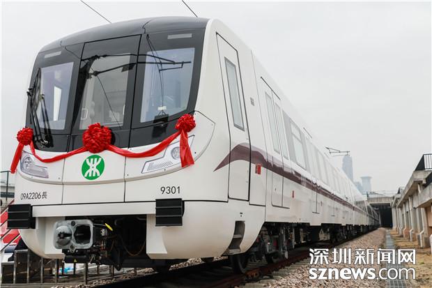 深圳地鐵9號(hào)線西延線首輛列車停在僑城東車輛段軌道上