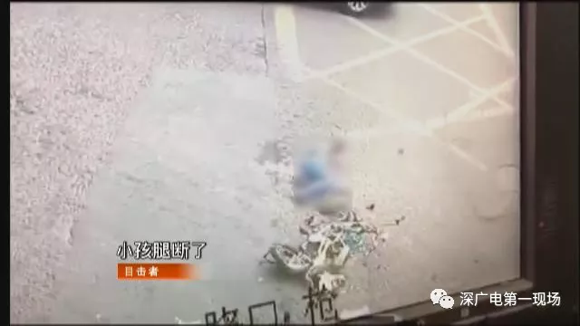 監(jiān)控畫面右下角能看到幾乎被碾碎的電動車和摔在地上的學(xué)生,學(xué)生躺在地上掙扎,似乎左腿已不能動彈。