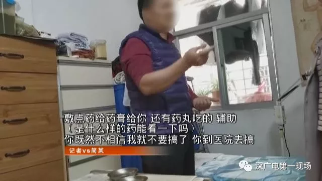 這套房子是三房一廳,有2個(gè)臥室1間治療室和廚房,跟住家一樣,沒有任何跟看病有關(guān)的招牌或宣傳字樣,在客廳里有看似大玻璃瓶泡的藥酒,和很多看似草藥的東西。其中一間房是治療室,有中藥柜和藥罐,還有一張按摩床,墻上貼有穴位圖。聽了記者描述病情后,簡(jiǎn)某在記者肩部及腰部簡(jiǎn)單按壓,表示這些問題難不倒他,他完全可以治。