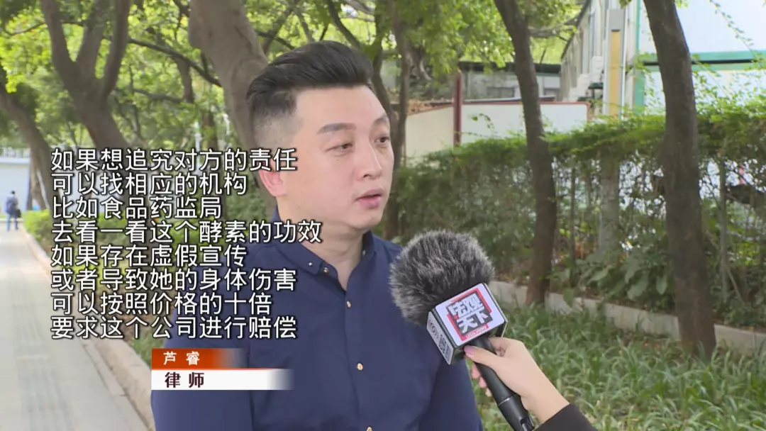 此外律師表示,如果該酵素產(chǎn)品并不存在公司所稱的排毒、養(yǎng)生等功效,則可能涉嫌虛假宣傳。如果確實(shí)是由于酵素導(dǎo)致了張女士的身體出現(xiàn)問題,公司方還應(yīng)當(dāng)賠償誤工費(fèi)等其他費(fèi)用。