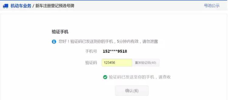 用戶須獲取并錄入手機短信驗證碼,驗證預選號牌的手機號碼。