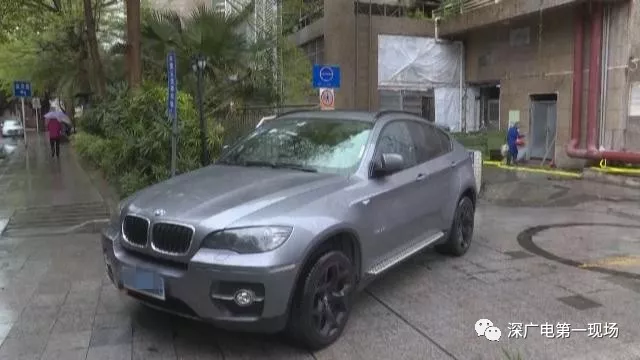 今天上午九點多,《第一現(xiàn)場》記者來到景源華庭小區(qū),看到一輛深灰色的寶馬車還停在停車場的出口位置,但車上已經(jīng)沒有人了。
