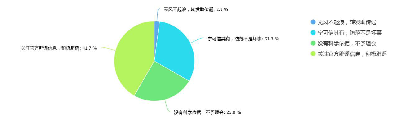 “舌尖上的謠言”長(zhǎng)期在朋友圈里“屢辟屢傳”,其中一個(gè)重要原因是因?yàn)橄M(fèi)者有著極大的安全焦慮。食品謠言的存在,不僅說(shuō)明了消費(fèi)者在相關(guān)科學(xué)知識(shí)方面的空白,也反映出社會(huì)對(duì)食品安全的擔(dān)憂(yōu)。不過(guò)經(jīng)過(guò)相關(guān)部門(mén)和媒體的大力宣傳,已經(jīng)有41.7%的受訪(fǎng)者會(huì)主動(dòng)關(guān)注官方辟謠信息,積極辟謠。