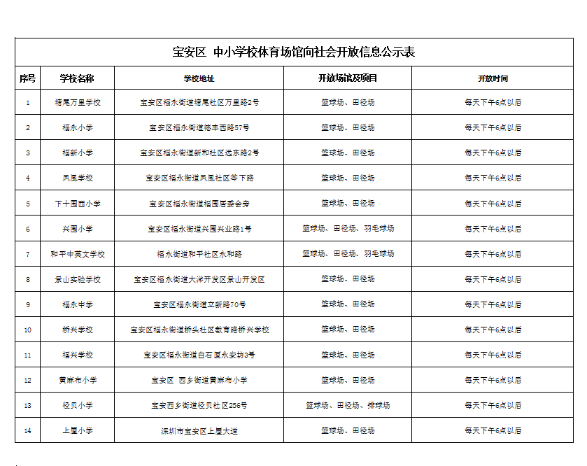 深圳市教育局關(guān)于學校體育館向社會開放的信息公告