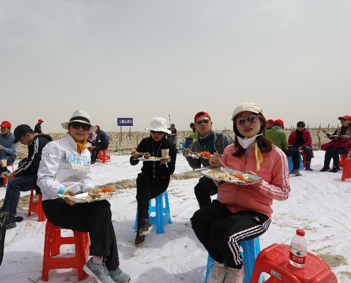 勞動(dòng)后大家一起吃飯更是特別香