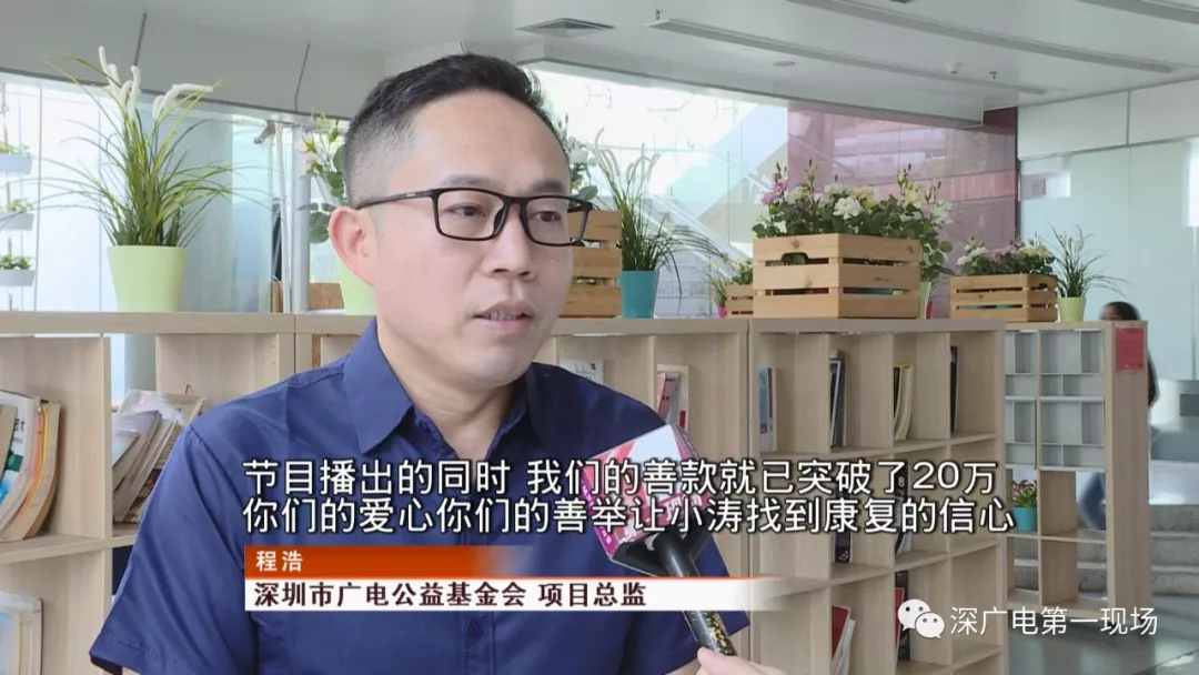 廣電公益基金會(huì)項(xiàng)目總監(jiān)程浩告訴記者,這也是《第一現(xiàn)場》近期救助個(gè)案中速度最快的一次,特別感謝深圳這座愛心的城市,可愛的市民的的善舉,讓小濤找到了康復(fù)的信心。