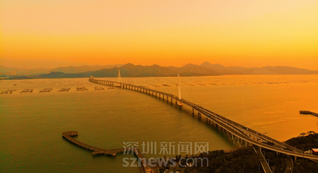 夕陽下的深圳灣大橋