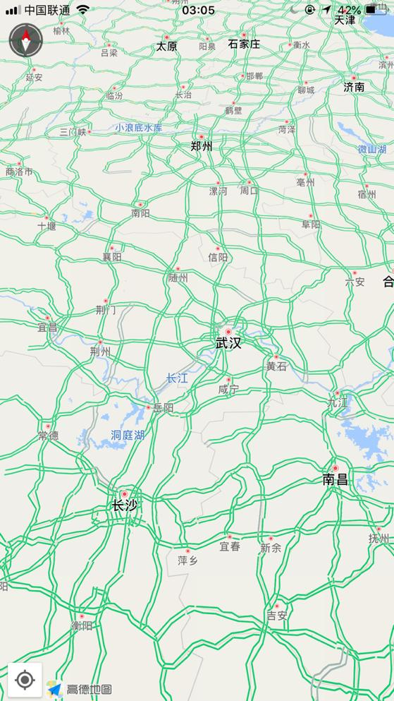 凌晨2點58分,北京周邊,高德地圖上看,一片綠色,讓人覺得特別舒服。