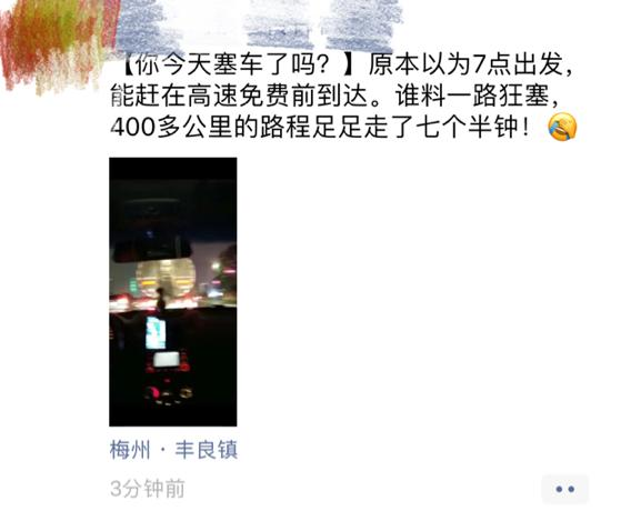 有坐大巴的朋友因為塞車時間遠超預(yù)期,遇上手機快沒電,心急不已,只能斷斷續(xù)續(xù)地開了又關(guān)機,以便與接他的家人保持聯(lián)系又留住最后一點電量。而家人也在當(dāng)?shù)乜h城等了他四五個小時。