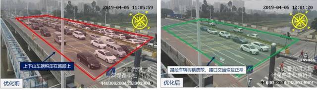 深圳交警采用遠(yuǎn)程步控及路面手動控制及時疏散積壓排隊(duì)車輛,約中午12點(diǎn)路面車流量逐漸減少,路口交通恢復(fù)正常。