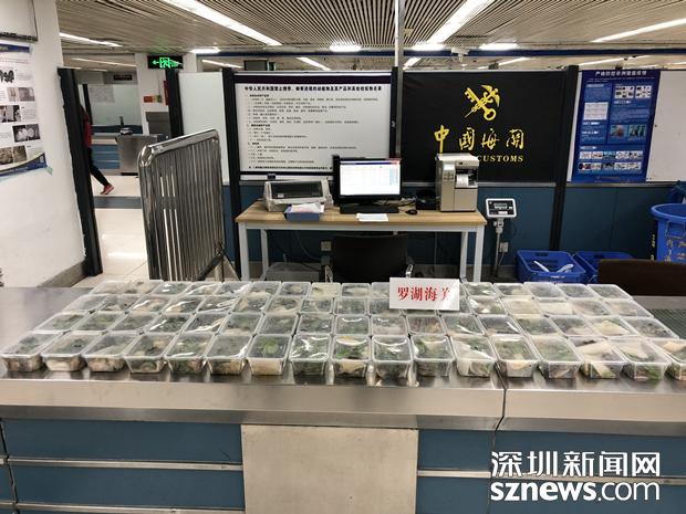 3月21日晚,兩名男性旅客各自提著兩個外形相似的大行李袋及一副魚竿,從羅湖口岸入境。在對其行李進(jìn)行X光機(jī)檢查時,海關(guān)關(guān)員在機(jī)檢圖像中發(fā)現(xiàn)了異常,圖像顯示四個袋子中的物品呈現(xiàn)生物特征,而且有若干個相同的容器包裝著,于是海關(guān)關(guān)員要求兩名旅客打開行李袋進(jìn)行詳細(xì)檢查。