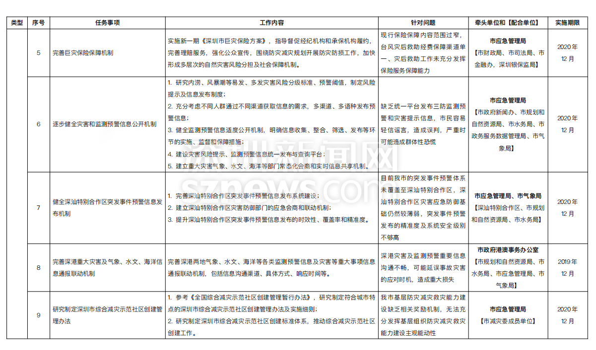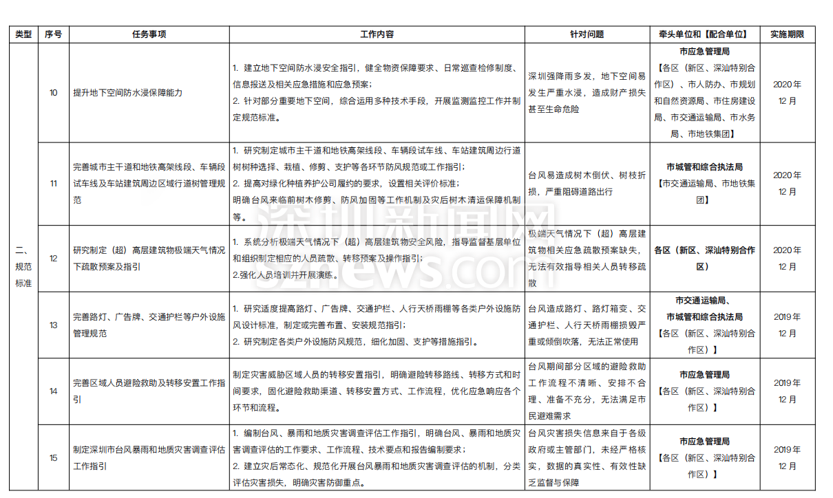 附:《深圳市提升臺風(fēng)暴雨災(zāi)害防御能力重點任務(wù)實施方案一覽表》