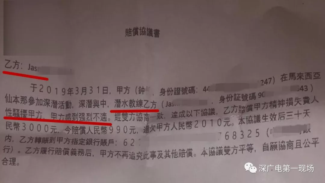 貌似事情有了結(jié)果,但兩天前小鐘和小丹返回了國內(nèi),但賠償卻一直沒有兌現(xiàn),于是兩人選擇向媒體曝光,提醒市民外出旅游潛水時(shí)提防“色狼”。