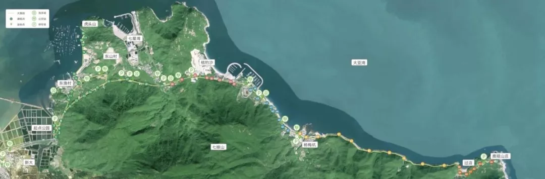 在綠道導(dǎo)引地圖上記者看到,綠道橫跨新大、東漁、東山三個社區(qū),由西向東依次經(jīng)過珍珠島、東山碼頭、七星灣游艇會、桔釣沙海灣、新體育海洋運動中心、浪騎游艇會、楊梅坑景區(qū),同時還經(jīng)過聞名遐邇的高嶺古村和兩個承傳東山漁歌、東漁天后誕非物質(zhì)文化遺產(chǎn)的疍家漁民聚集區(qū)。