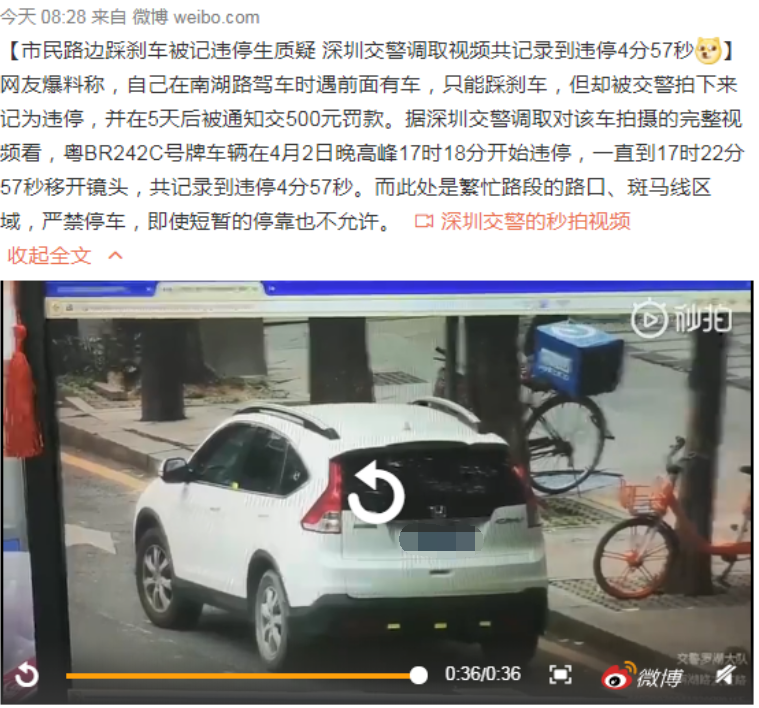 接舉報(bào)后,交警查看了監(jiān)控,發(fā)現(xiàn)該車輛違停近5分鐘……