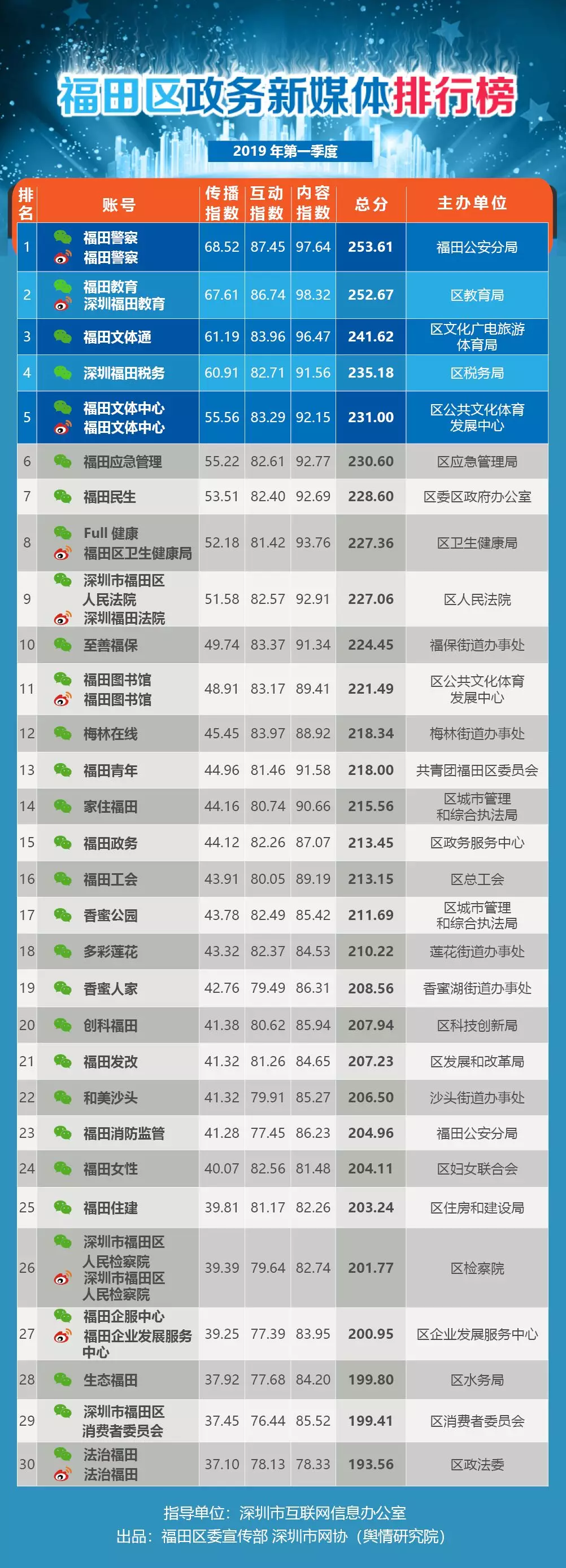 《福田區(qū)政務(wù)新媒體排行榜》出爐啦?。?/p>