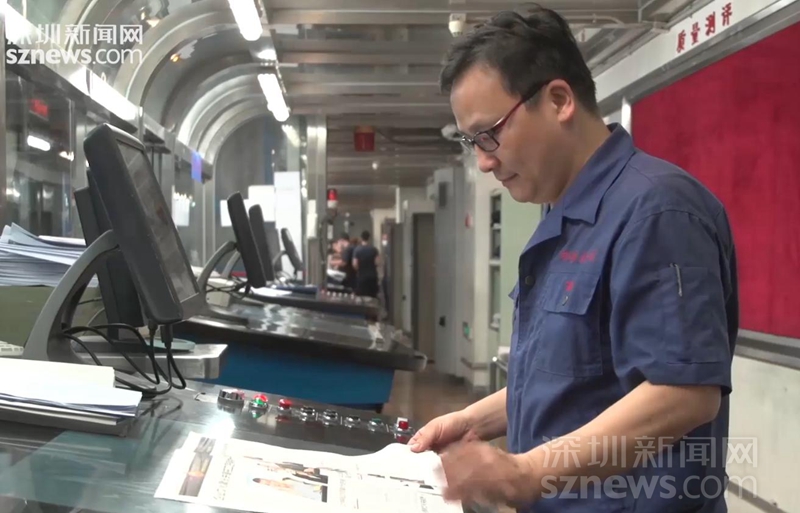 凌晨3時,深圳報業(yè)集團印刷廠工程師老徐在查看報樣(秦川 涂勝 齊釗遠)