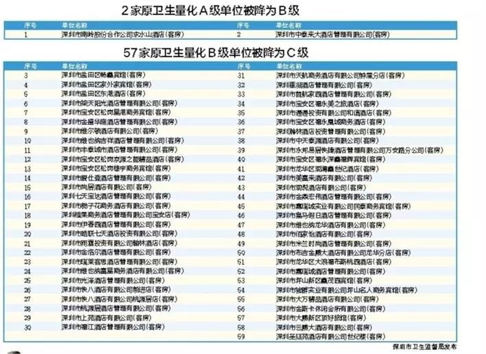 5、深圳市衛(wèi)生監(jiān)督部門自2018年12月開始集中開展專項整治行動。截至目前,行動中共檢查1660家酒店業(yè)單位,責(zé)令限期整改224家,立案95宗,共有59家單位在衛(wèi)生信譽(yù)等級評定復(fù)審工作中被予以“降級”,其中不乏部分知名連鎖酒店業(yè)單位。