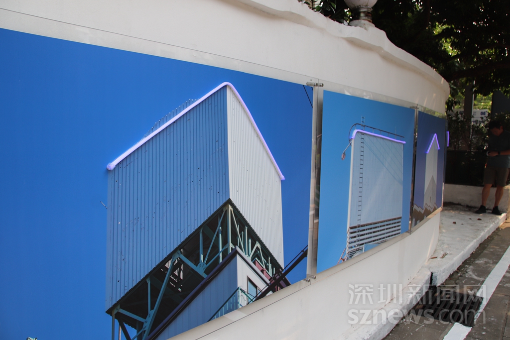木村華子作品《[ ]廣告牌》給照片里的建筑加上了讓人心情平靜的藍色霓虹燈